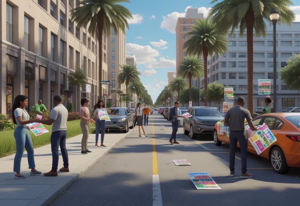 Some spots in Tallahassee have rules about where and how you can hand out flyers. This includes neighborhoods, business properties, or city parks.
